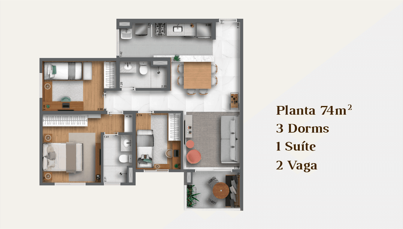 Torre 3: 2 Gardens de 109m2 e 1 de 100m2